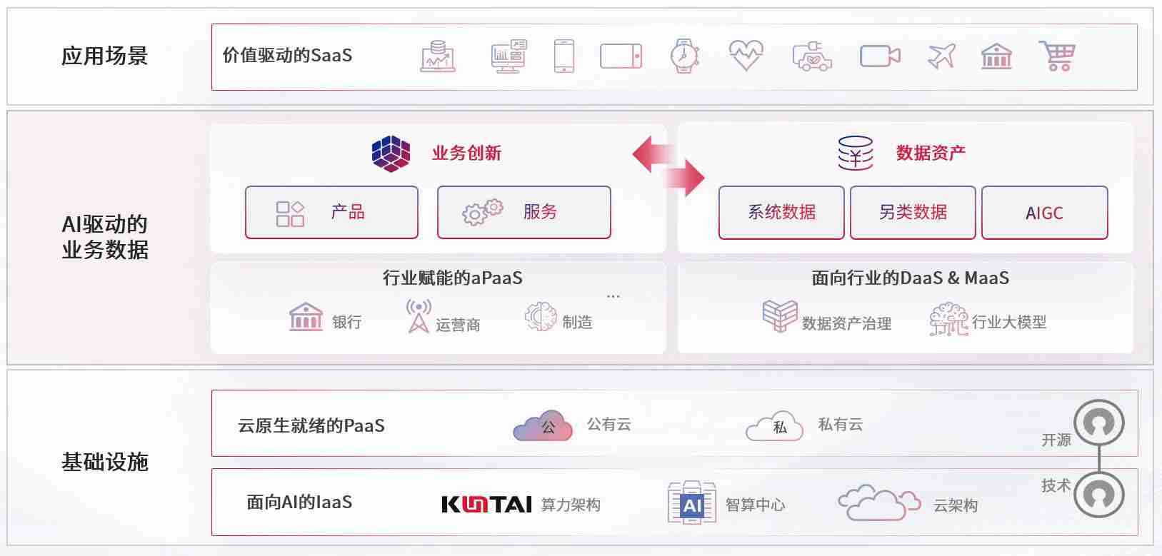 数字时代,,围绕企业数字化转型的关键要素,,,z6com尊龙数码开创性的提出数云融合战略和技术体系框架,,着力在云原生、、数字原生、、、、AI原生和信创产业上架构产品和服务能力,,,为处在不同数字化转型阶段的快消零售、、、、汽车、、、金融、、医疗、、、政企、、、、教育、、运营商等行业客户提供泛在的敏捷IT能力和融合的数据驱动能力,,,构建跨界融合创新的数字业务场景和新业务模式,,,助力企业级客户建立面向未来的核心能力和竞争优势,,全面推动社会的数字化、、智能化转型升级。。。。